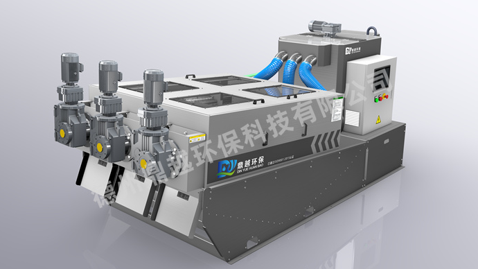 1.設(shè)計緊湊,脫水機里面包含了電控柜、計量槽、絮凝混合槽和脫水機主體。